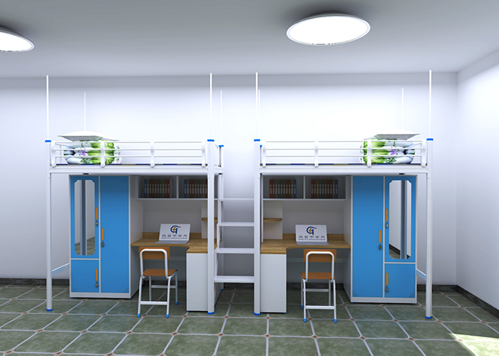 廣東高華家具宿舍公寓床廠家的雙人公寓床-GH-G-098款式新穎,功能實用,采用環(huán)保0甲醛烤漆,無論悶熱潮濕都恍然如新。 工藝設計上,采用先進的卡口式連接,這種連接的優(yōu)點在于承重性強,穩(wěn)固性好,上下床時非常平穩(wěn),不易搖晃,安全舒適,整張床可承重500公斤,經(jīng)久耐用且十年質(zhì)保,可以適應各類宿舍。